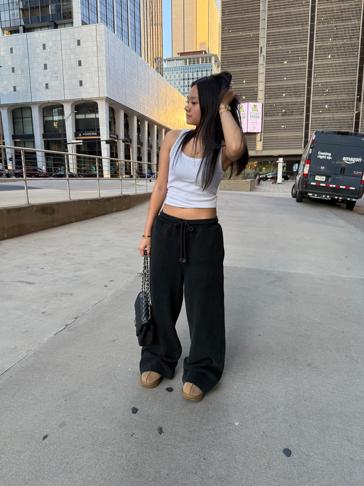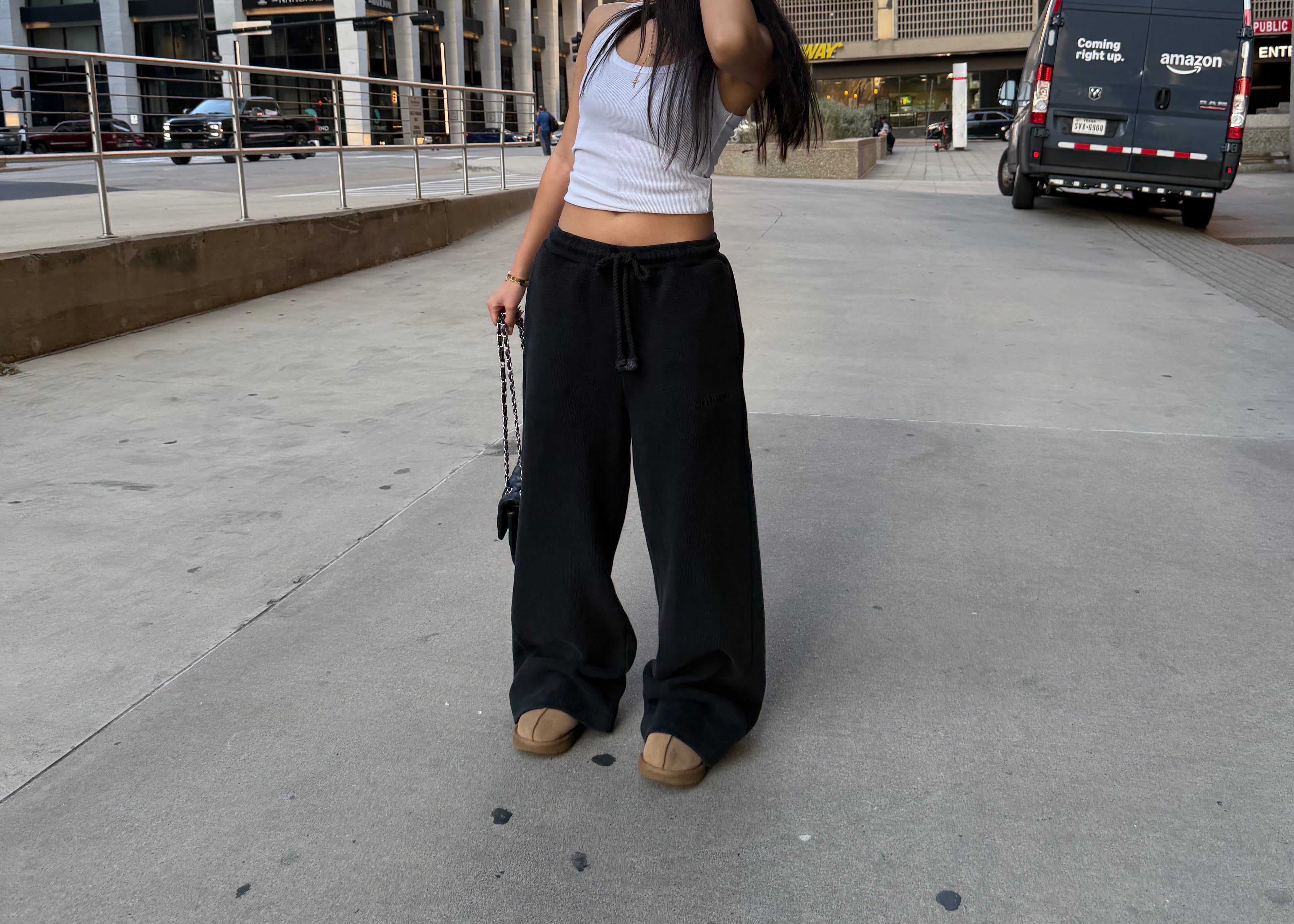 Female is 5'1, wearing size small (for extra stacking at the foot)